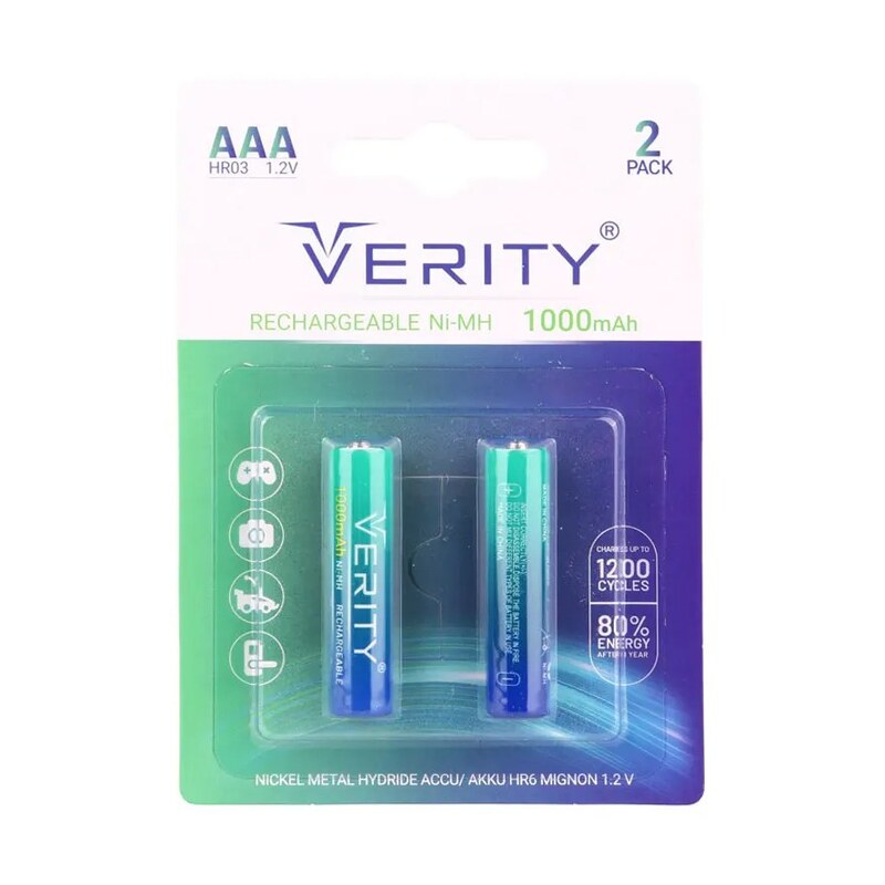 باتری دوتایی نیم قلمی شارژی Verity Rechargeable Ni-MH HR03 AAA 1000mAh۴۸۹٬۸۷۵ 8%