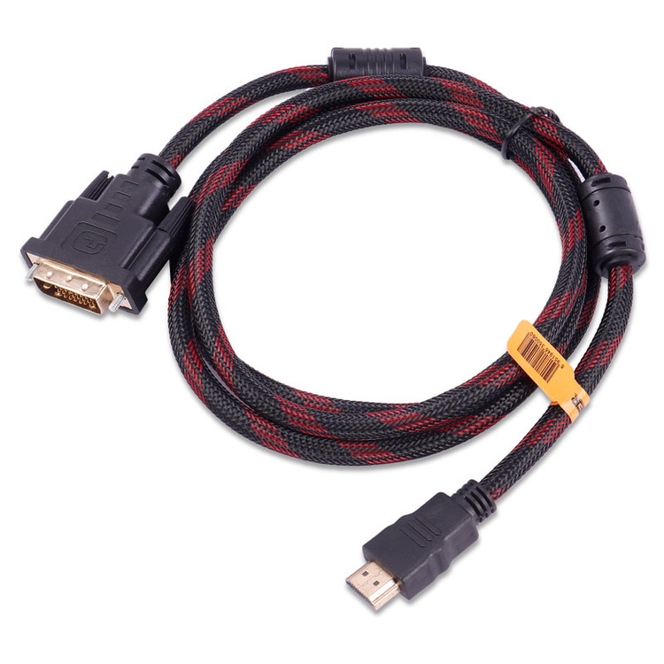 طول کابل ۱٫۵ متر و نوع کانکتورها یک سر HDMI و یک سر DVI ظاهر زیبا به شکل پوست ماری و ترکیبی از رنگ مشکی و قرمز سازگار با انواع کامپیوترها و دستگاه های پخش تصویر مانند مانیتور و تلویزیون