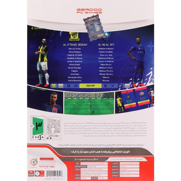 سبک بازی ورزشی، سازنده Konami، شامل یک DVD9، مناسب برای نصب روی کامپیوتر