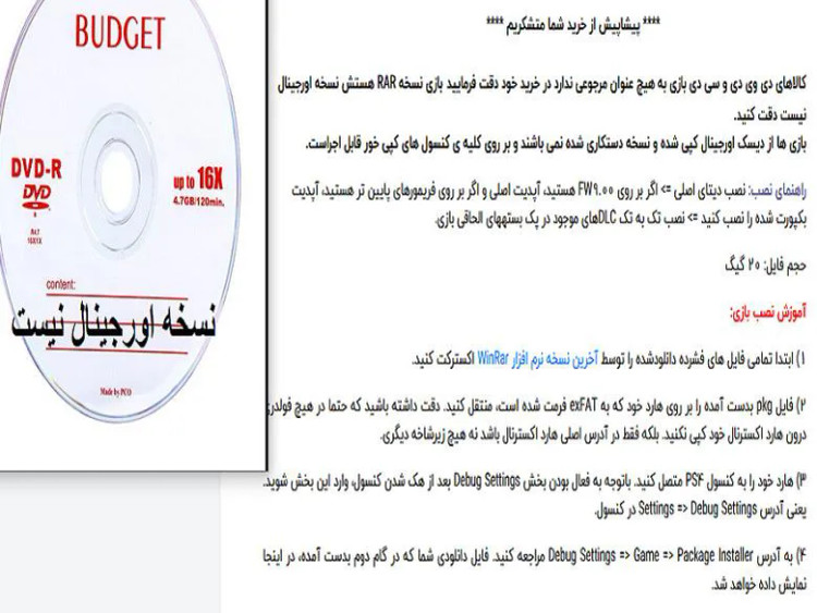 نسخه کپی هست باید بوسیله کامپیوترو لپ تاب فایل مورد نظر استخراج کرده داخل فلش یا هارد ریخته به دستگاه ps4 نصب کنید تا مراحل نصب بازی انجام شود