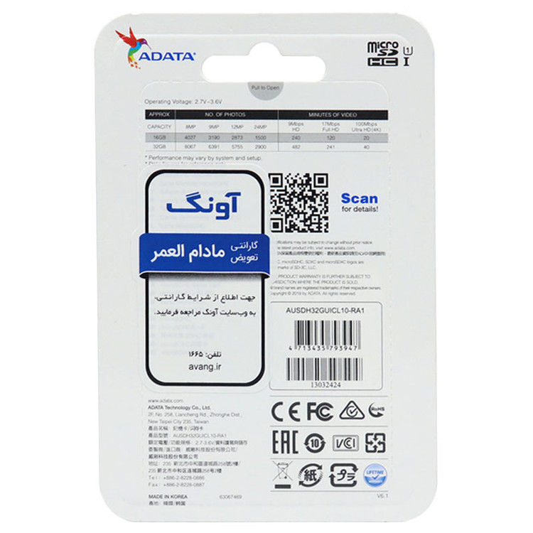 رم میکرو 32 گیگ ای دیتا ADATA Premier C10 U1 80MB/s + خشاب