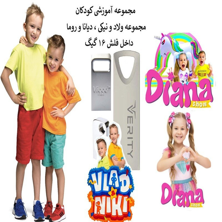 فلش مموری 16 گیگ همراه با مجموعه آموزشی کودکان ولاد و نیکی و دیانا و روما