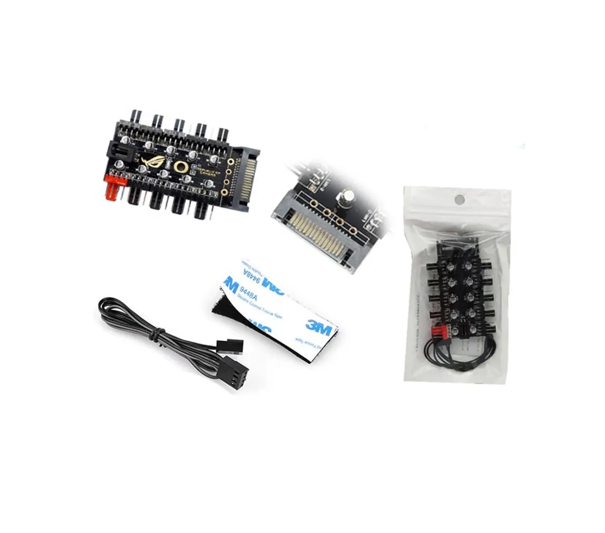 - گسترش و رابط پورت 4 پین فن تا 10 پورت برای ارتقای تعداد رابط فن کامپیوتر و متمرکز کردن آنها در خارج از مادر برد اصلی .
