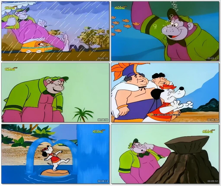 گوریل انگوری و دوست صمیمیاش بیگلی بیگلی معمولاً سوار یک ون کوچک زرد میشوند البته گوریل انگوری بالای سقف ماشین مینشیند بدون اینکه سقف ماشین بشکند!