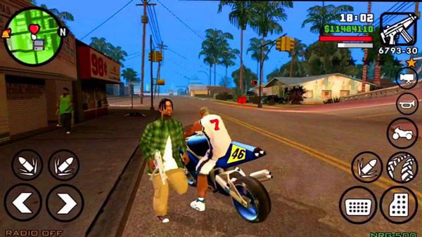 داستان بازی این بار شما را در نقش CJ قرار میدهد که در سال 1992 در ایالت خیالی San Andreas که سه شهر اصلی در آن وجود دارد زندگی میکنید. شما بهتازگی به ایالت برگشتهاید و به دنبال حل کردن ماجرای قتل مادرتان هستید؛ اما در اولین لحظهای که وارد شهر میشوید توسط پلیسهای فاسد بازجویی و تهدید شده و متعلقات خود را از دست میدهید پس از آن وارد خانه خود شده و دوستان قدیمی را ملاقات میکنید تا از رازهای این داستان پرده بردارید. داستان بازی GTA San Andreas یکی از بزرگترین جهشها را نسبت به بازیهای قبلی داشته و روایت خانواده، دوستی، خیانت و فساد را به شکلی زیبا و جذاب برای شما آماده کرده است. وجود کاراکترهای عمیق و دیالوگهای بهیادماندنی، روایت داستانی بازی را در سطح بسیار خوبی قرار داده است.