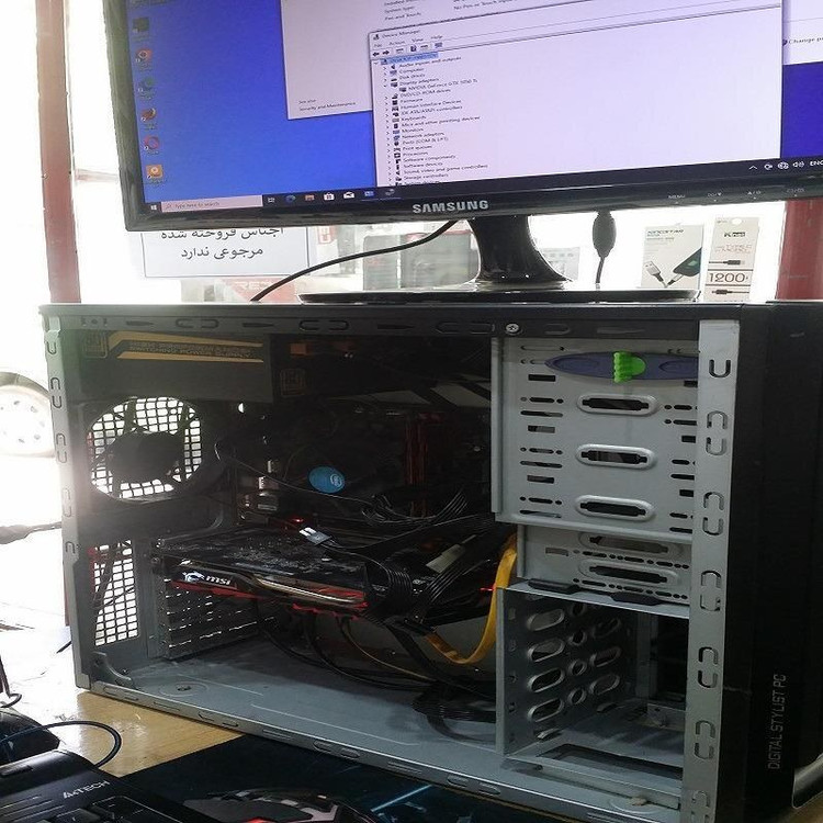 مانیتور 19 اینچ LED سامسونگ کیس گرین ، مادربرد msi گیمینگ ،رم 8 2400 اصلی، گرافیک 4 گیگ 1050ti ، پاور گرین گلد پلاس، هارد ssd m2 250 gig مدل لکسار ، سی پی یو i3-8100 با فن